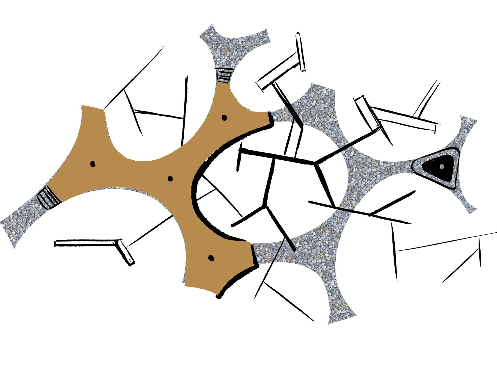 The triangulated dock system allows the structure to move flexibly with the ocean tide. This motion can be harnessed for energy.