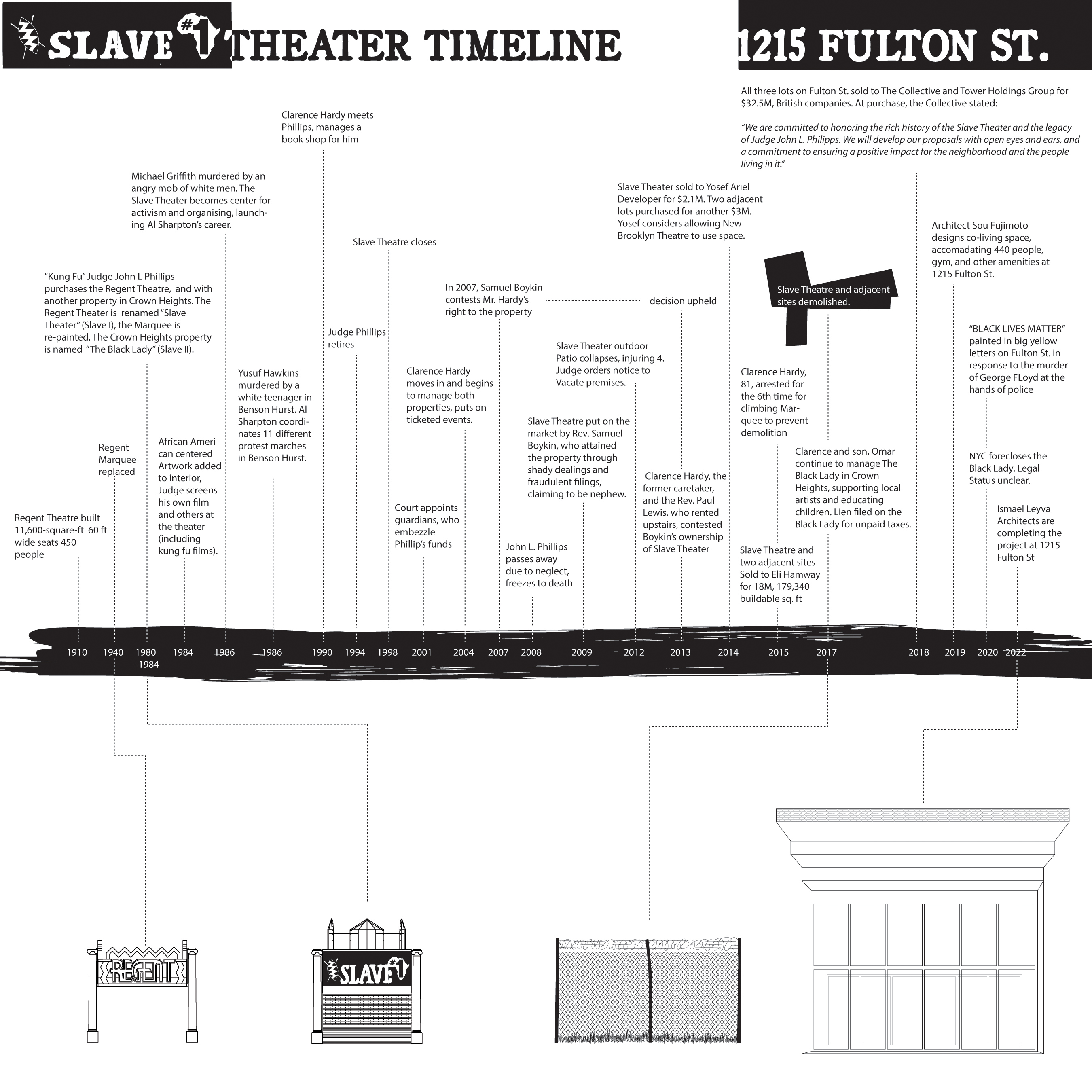 The Slave Theater was created in 1984, when an African-American Judge bought a defunct theatre in Bedford-Stuyvesant to showcase independent films. However, the cinema space was radually re-appropriated as a center for civil rights activism and community gathering.